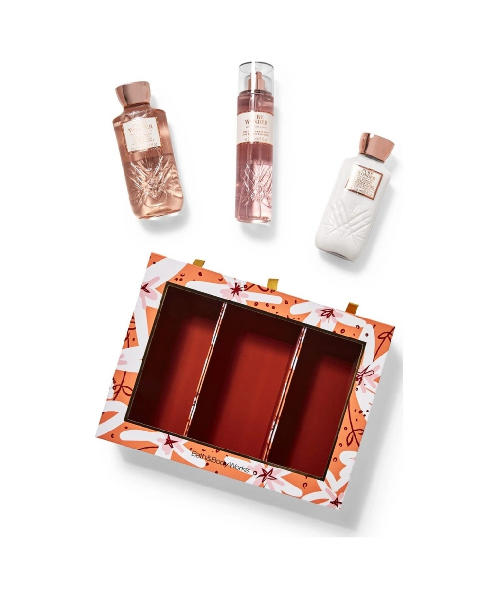 Kokusu: rüya gibi, sıcak, neşeli ve parlak bir zevk. ; Koku notaları: buzlu gül, yıldız yasemin ve sıcak beyaz kehribar. ; Ne işe yarar: hediye vermeyi çok kolaylaştırır ve yüzlerini gülümsetir. ; Neden sevecekler: Günlerine (ve ağacın altına) biraz ışıltı katar Günlük besleyici vücut losyonu (8 fl oz), duş jeli (10 fl oz), güzel koku sisi (8 fl oz) Ürün, dekoratif bir hediye kutusu içinde düzenlenmiş olarak gelir Kokusu: rüya gibi, sıcak, neşeli ve parlak bir zevk. ; Ne işe yarar: hediye vermeyi çok kolaylaştırır ve yüzlerini gülümsetir.;