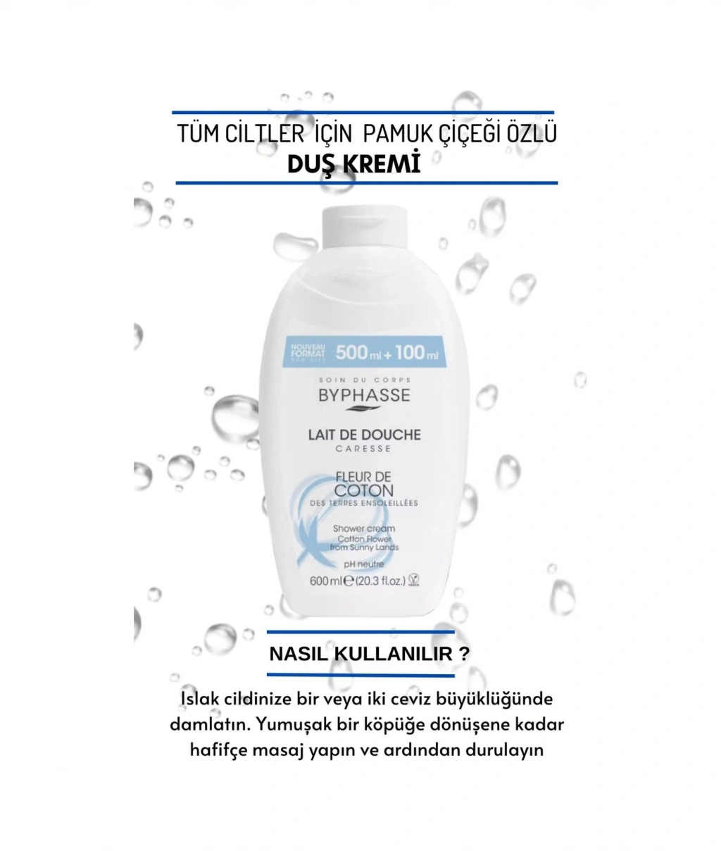 Byphasse Caresse Pamuk Çiçeği Özlü Kremli Duş Jeli 600 ML