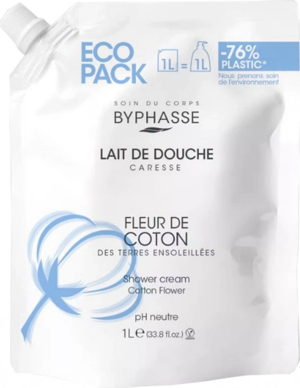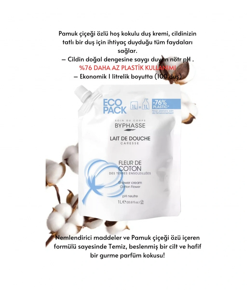 Byphasse Caresse Pamuk Çiçeği Özlü Kremli Duş Jeli Ekonomik Yeniden Dolum Paketi 1 L