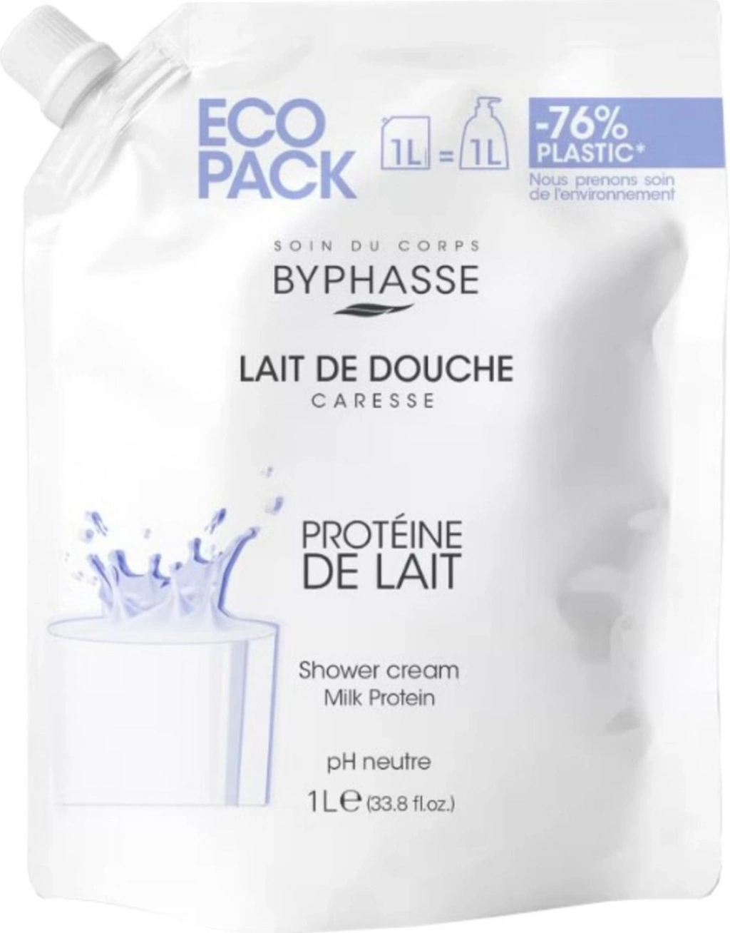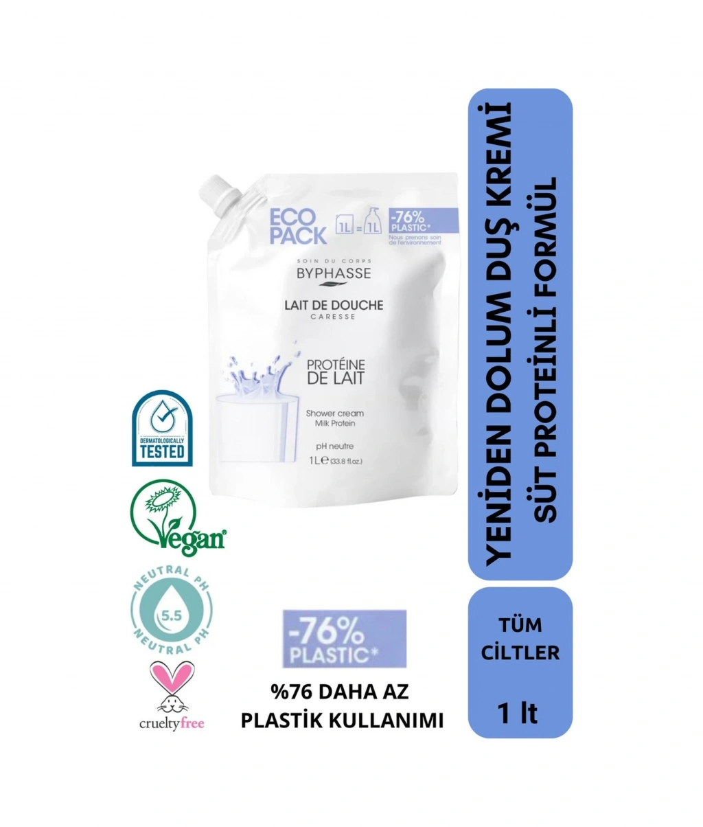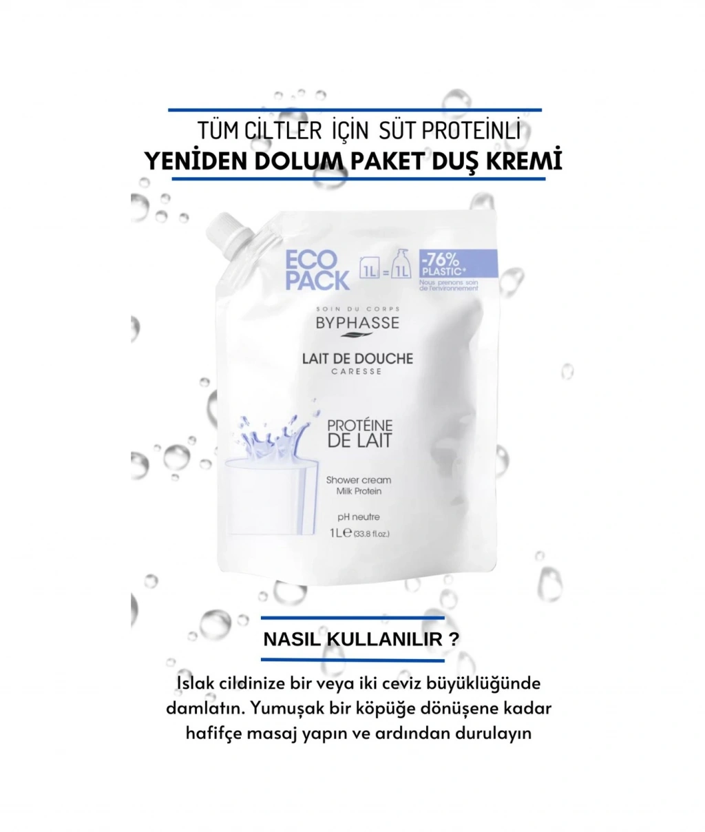 Byphasse Caresse Süt Proteinli Kremli Duş Jeli Ekonomik Yeniden Dolum Paketi 1 L