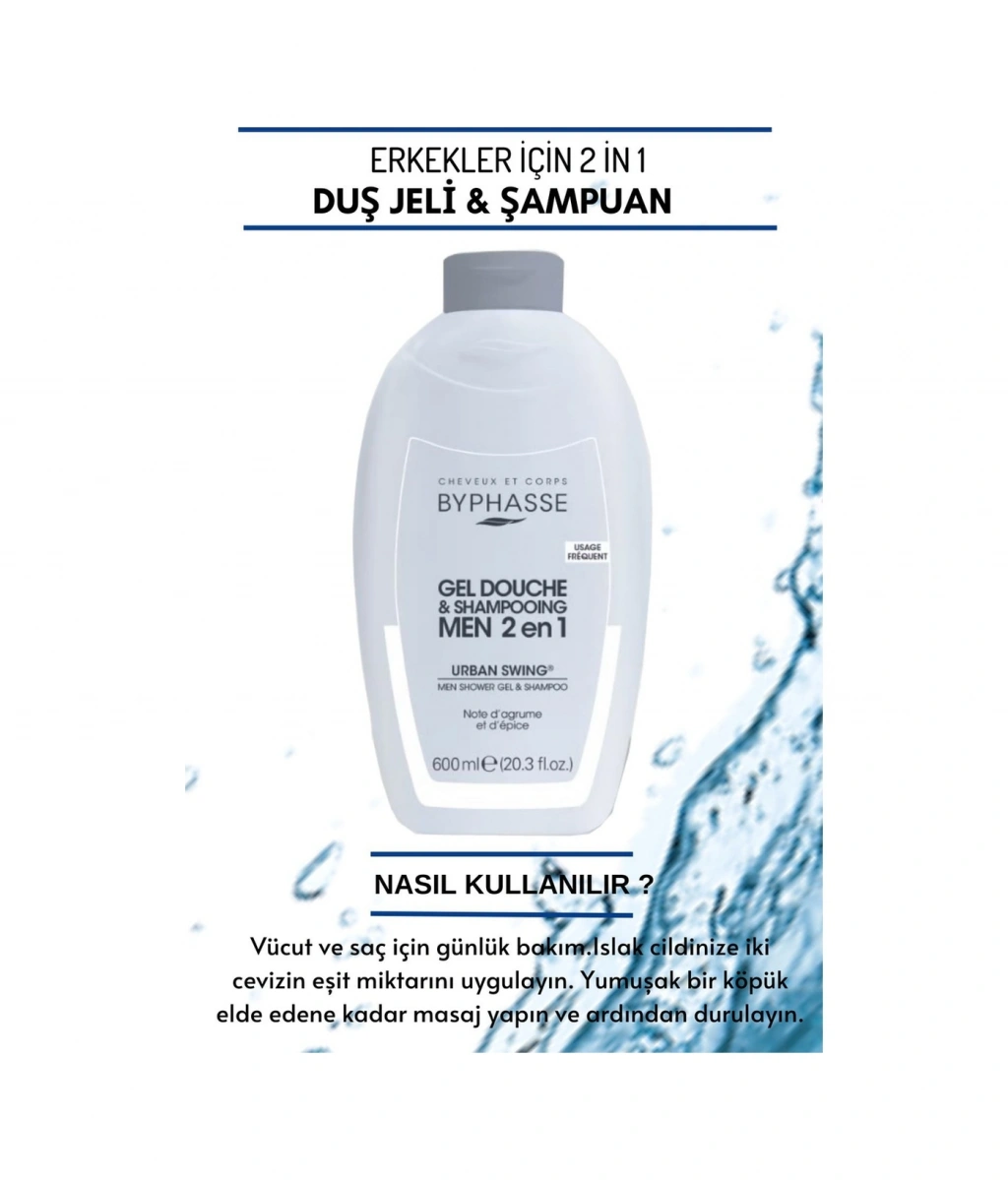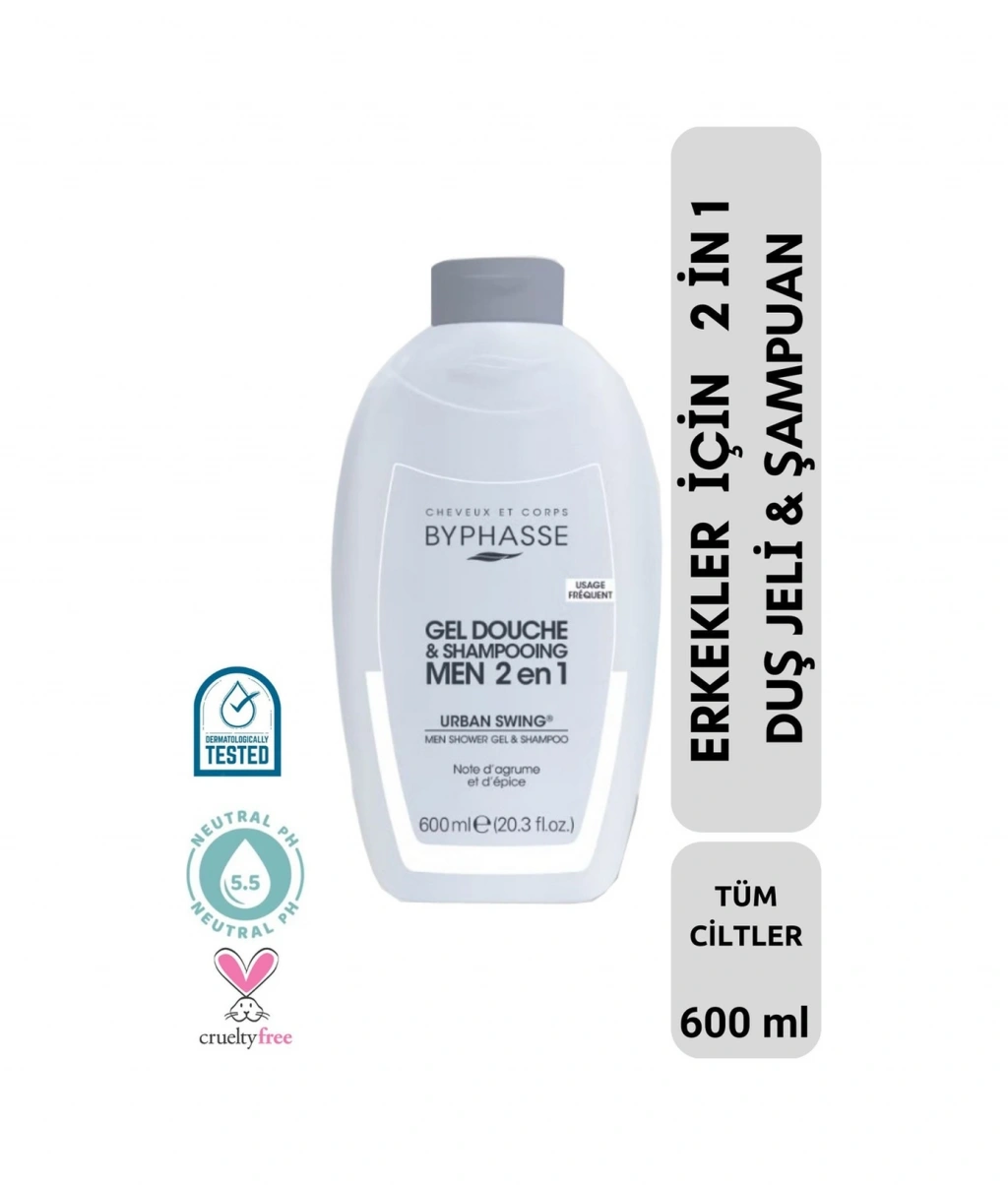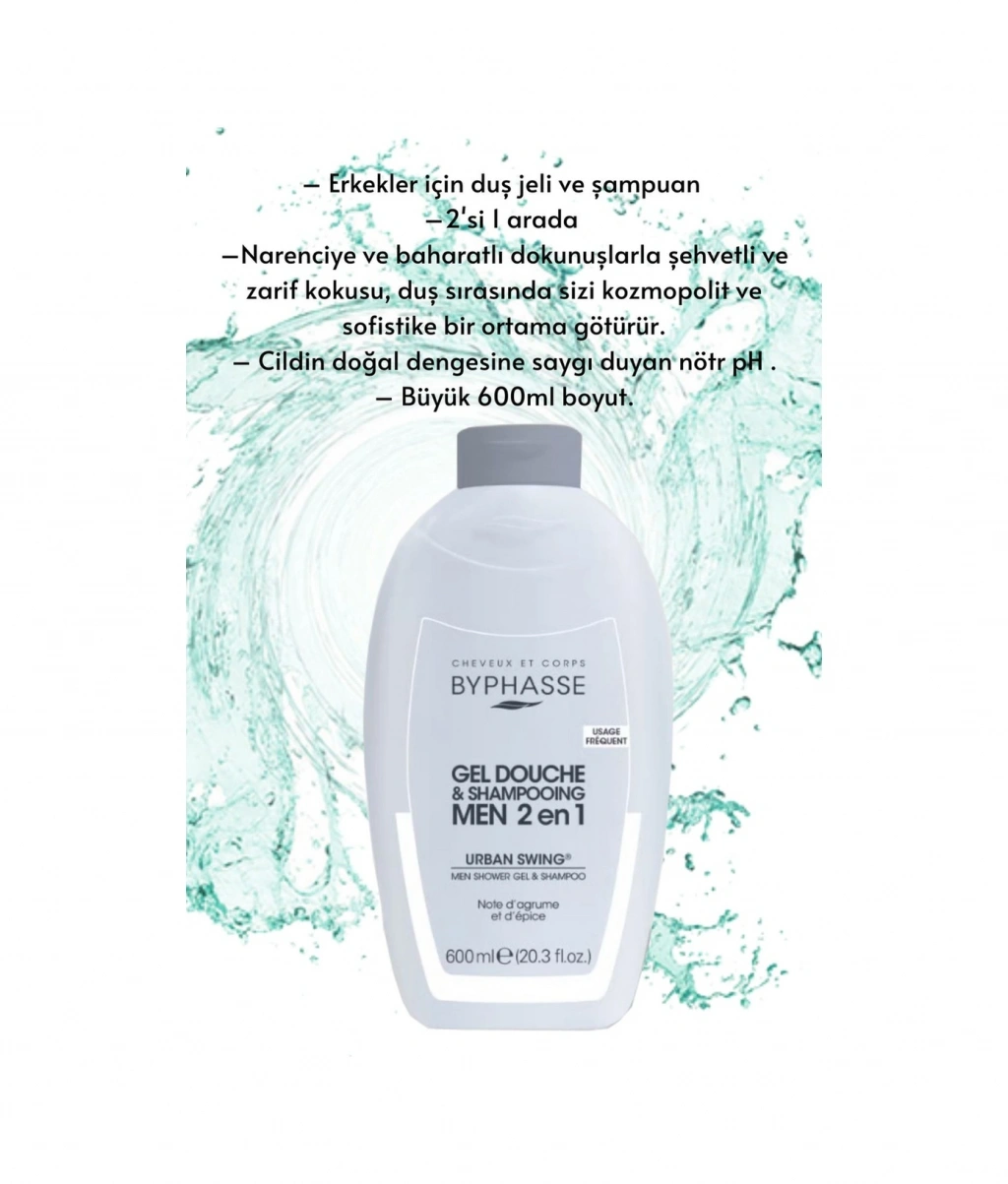 Byphasse Erkekler İçin 2 İn 1 Duş Jeli & Şampuan Urban Swing For Men 600 ML