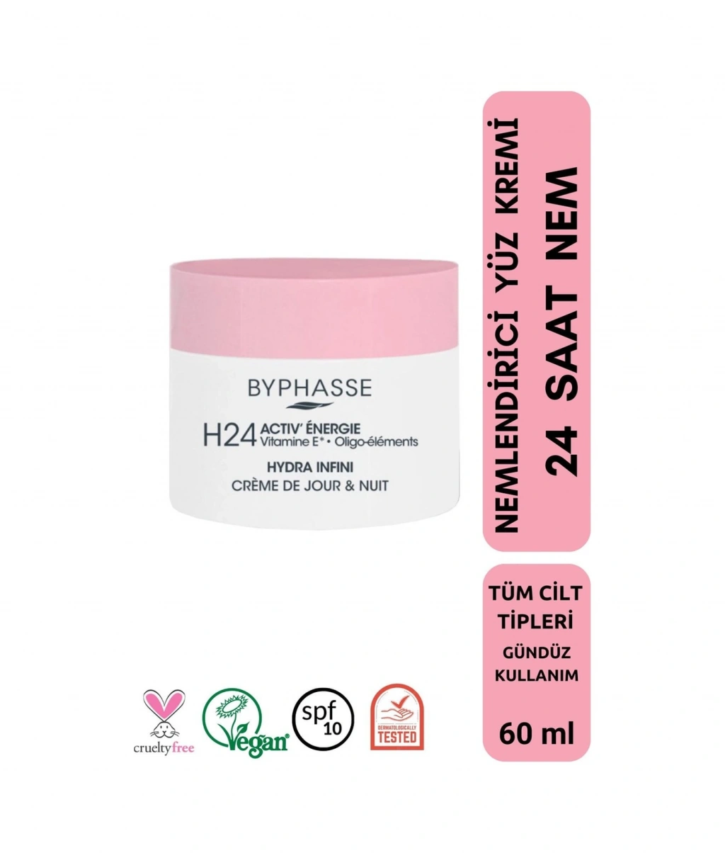 Byphasse Hydra Infini krem, epidermisin dış katmanları için uzun süreli nemlendirme sunar. ;Cilt hücrelerinin enerjisini ve düzgün çalışmasını artıran vazgeçilmez eser elementler, mineraller içerir.Çinko, manganez ve magnezyum gibi bu mineraller cilt dokularının yenilenmesi için gereklidir.; İpeksi dokusu, cildinizin 24 saat boyunca yumuşak ve nemli hissetmesini sağlar.;Uygulama sonrası yağlı cilt hissi bırakmaz.; SPF 10 koruma faktörlüdür. ; Nasıl Kullanılır :Mükemmel şekilde temizlenmiş cilde yüz ve boyun bölgesine uygulayın, parmaklarınızla merkezden dışa doğru, göz çevresinden kaçınarak tamamen emilene kadar nazikçe masaj yapın