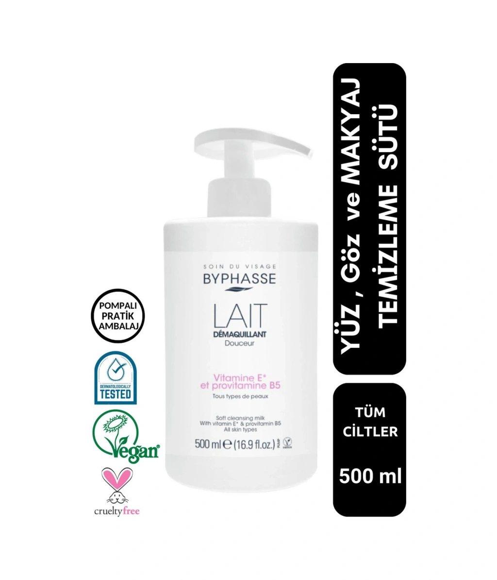 Byphasse Makyaj Temizleme Sütü Pratik Pompalı Ambalaj Tüm Cilt Tipleri 500 ML