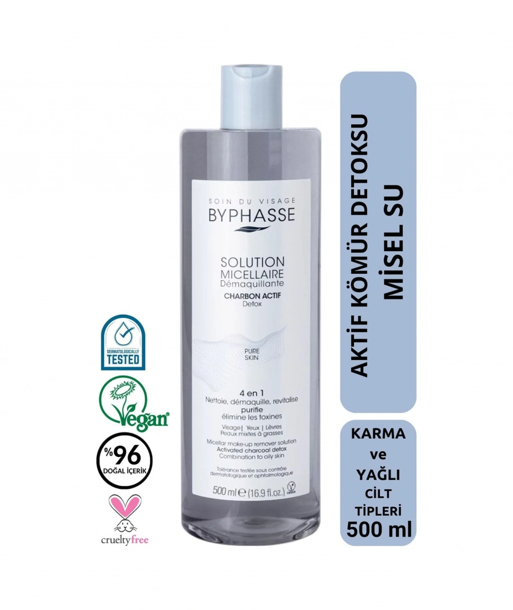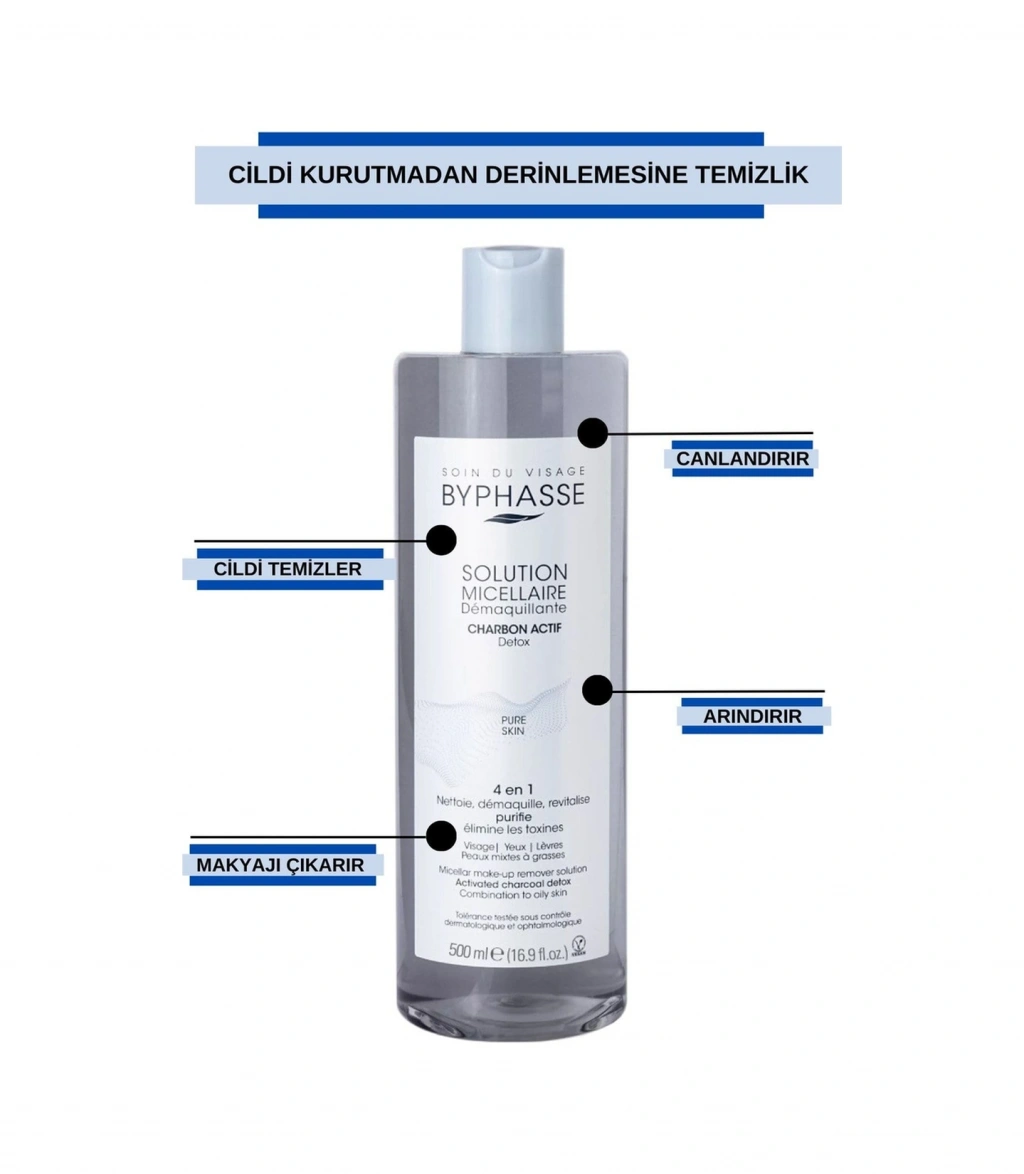 Byphasse Micellar Yüz Ve Makyaj Temizleyici Aktif Kömür Misel Su 500 ML