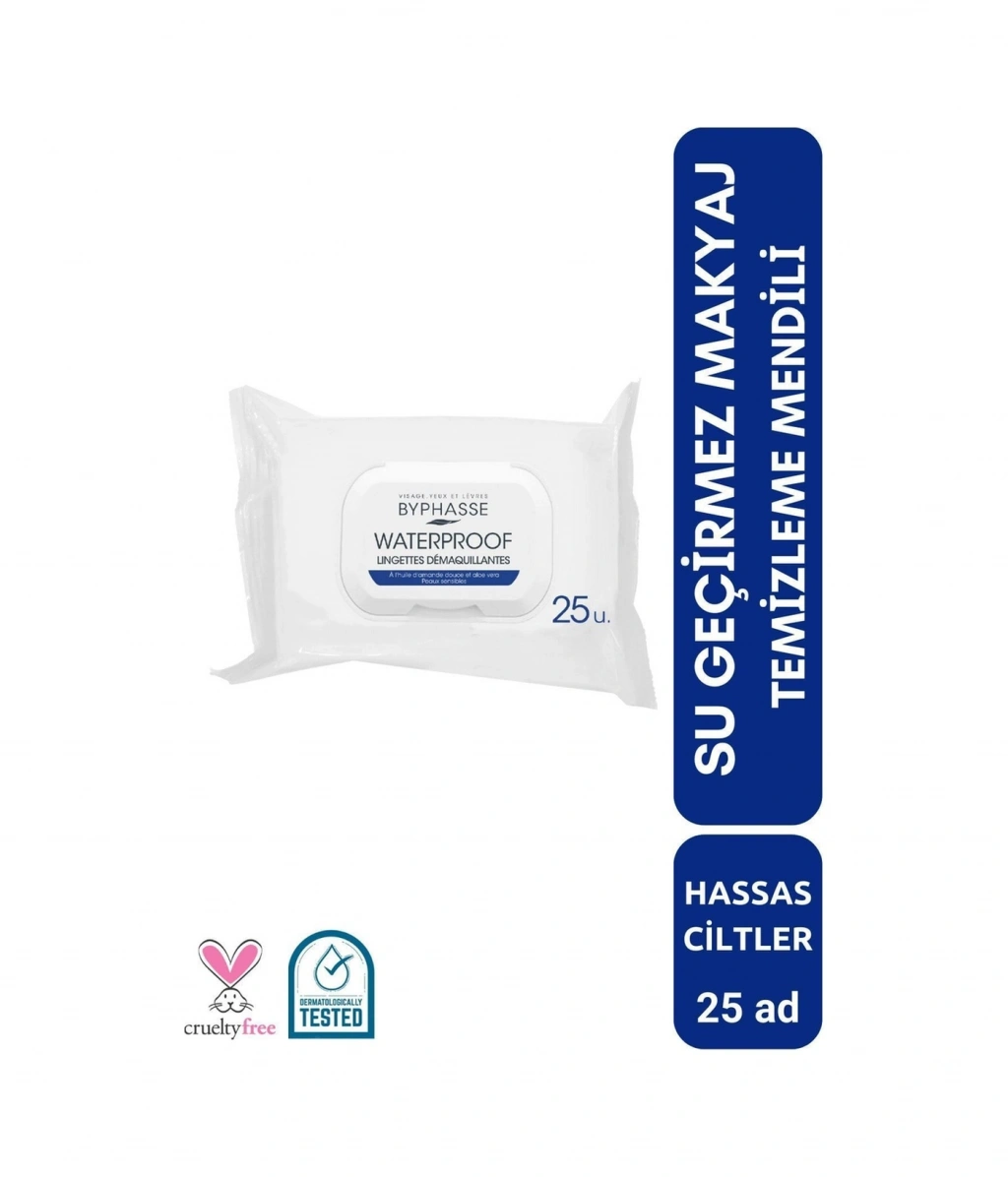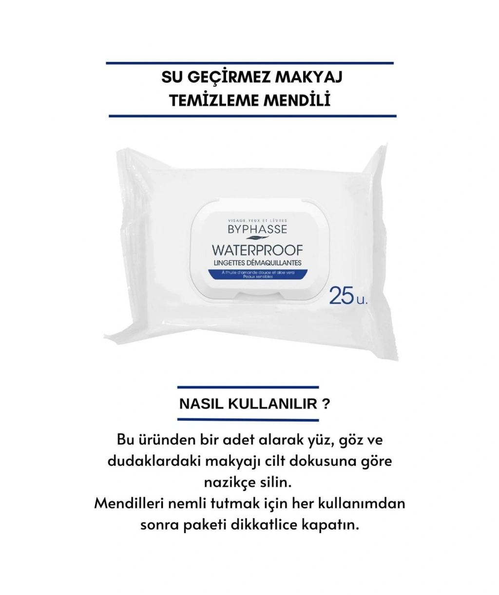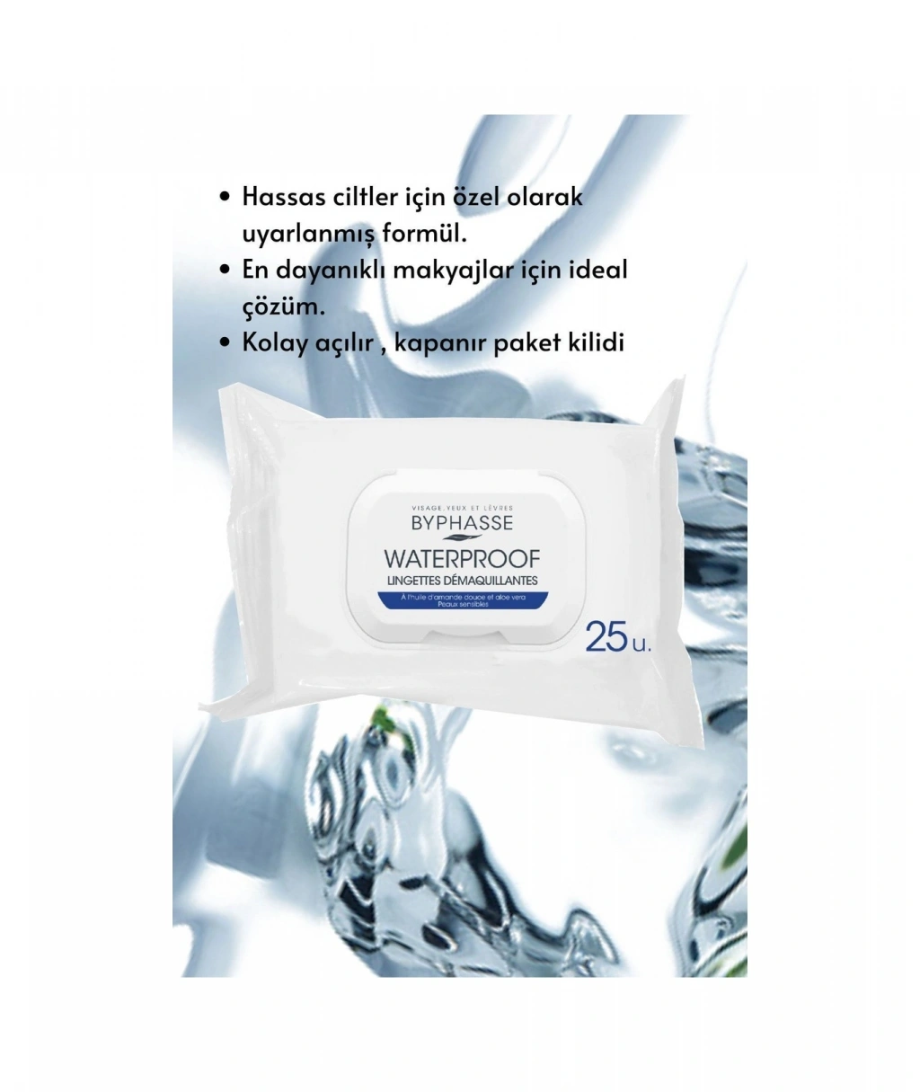 Byphasse Waterproof Makyaj Temizleme Mendili Hassas Ciltler 25'li