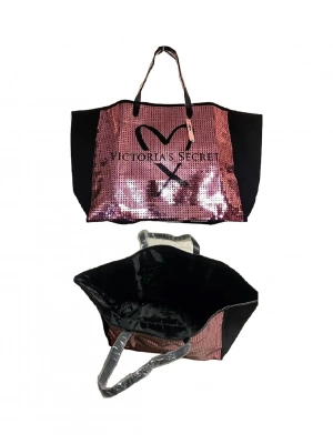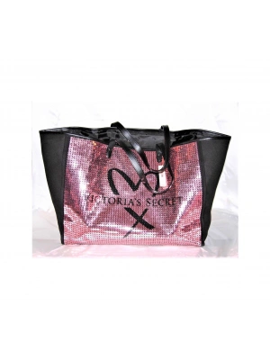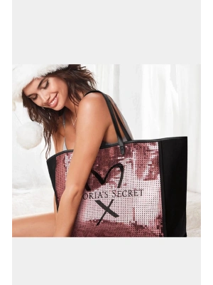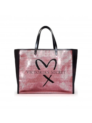Victoria's Secret Vs İkonik Desen Pembe Gümüş Pullu Payet İşlemeli Carryall Tote Pembe