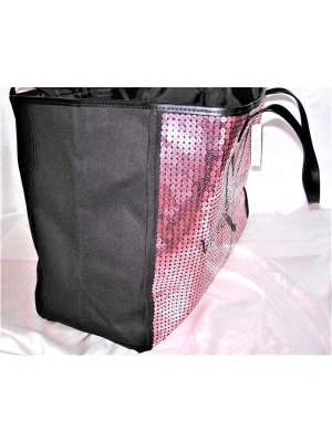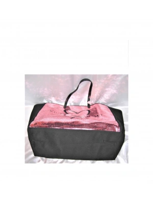 Victoria's Secret Vs Pembe Pullu Payet İşlemeli Kadın Büyük Boy Çıt Çıt Kapamalı Plaj Çantası Pembe - Siyah