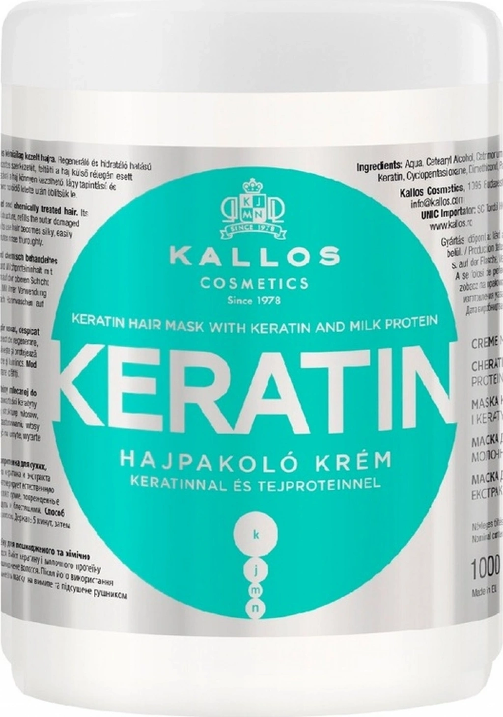 Kallos Cosmetics Keratinli ve Süt Proteinli Keratin Saç Maskesi 1 L