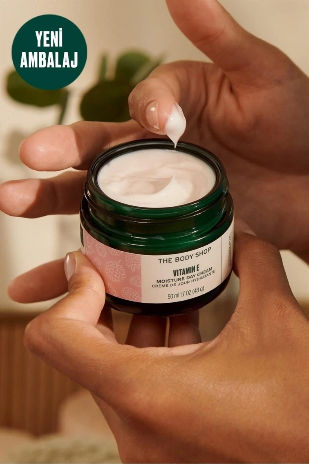 70'lerden beri cilt bakımının vazgeçilmezi olan ikonik E Vitaminli Nemlendirici Gündüz Kremimiz size 48 saat boyunca mutlu, sağlıklı görünen ve nemli bir cilt sağlar. Bu hafif, kolayca emilen formül cildin nemini yenilemekle kalmaz, aynı zamanda hayati nemi geri kazandırır. Hatta 8 saat sonra bile hidrasyonu +%38 artırır. Nemlendirici özellikleriyle bilinen iki kahraman bileşen de dahil olmak üzere %95 doğal kaynaklı bileşenlerle zenginleştirilmiştir: doğal kaynaklı hyaluronik asit ve E vitamini. Hyaluronik asit kulağa biraz teknik gelebilir, ancak yalnızca doğal olarak oluşan bir moleküldür. ağırlığının 1000 katı kadar su tutar ve cildi nemle dolgun tutar. Ancak bu krem, cildinize bakmaktan daha fazlasını yapar. E vitamini kaynağı olduğu bilinen ve meyve suyu endüstrisinden kalan ahududu kullanarak yaptığımız ahududu çekirdeği yağı içerir, bu da genel olarak daha az atık olduğu anlamına gelir. Ambalajımızı güncelledik, böylece en sevdiğiniz yüz kremi artık %40 geri dönüştürülmüş camdan yapılmış ve alüminyum kapaklı geri dönüştürülebilir bir cam kavanozda geliyor - tekrar tekrar kullanmak veya geri dönüştürmek* için mükemmel. Cildi 48 saat boyunca yoğun bir şekilde nemlendirir ; Tüm cilt tipleri için mükemmel ; E Vitamini, doğal kaynaklı hyaluronik asit ve ahududu çekirdeği yağı ile zenginleştirilmiştir ; %95 doğal kaynaklı içeriklerle zenginleştirilmiştir ; Vegan ; Dermatolojik olarak test edilmiştir ; *Yerel tesislerin imkan verdiği ölçüde. 1.Vitamin E Yüz Yıkama Jeli ile başlayın ve ardından Vitamin E Nemlendirici Tonik ile devam edin. 2.Vitamin E Nemlendirici’den badem büyüklüğünde bir miktar alın ve cildinize masaj yaparak uygulayın. 3.Göz çevresine uygulamaktan kaçının. Aqua/Water, Isopropyl Palmitate, Glycerin, Butylene Glycol, Cetyl Alcohol, Glyceryl Stearate, PEG-100 Stearate, Cetyl Esters, Myristyl Myristate, Phenoxyethanol, Caprylyl Glycol, Tocopheryl Acetate, Carbomer, Rubus Idaeus Seed Oil/Rubus Idaeus (Raspberry) Seed Oil, Parfum/Fragrance, Sodium Stearoyl Glutamate, Trisodium Ethylenediamine Disuccinate, Sodium Hydroxide, Sodium Hyaluronate, Benzyl Benzoate, Benzyl Alcohol, Geraniol, Linalool, Limonene, Hydroxycitronellal, Alpha-Isomethyl Ionone, CI 14700/Red 4, CI 19140/Yellow 5.