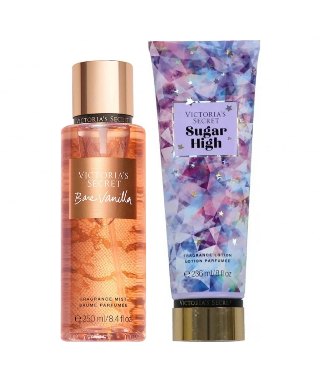 Victoria's Secret MIX&MATCH :Bare Vanilla Vücut Spreyi Ve Sugar High Vücut Losyonu 2'li Set ; Kalıcı koku için duş sonrası losyonu sürerek cildinizi yumuşatın ve sprey ile son dokunuşu yapın ; Bare Vanilla : Koku tipi : Sıcak , Koku notaları: Krem Vanilya. Yumuşak Kaşmir ; Sugar High : Koku tipi : Sıcak Meyveli ; Koku notaları: sıcak meyveli akide şekeri ve meyve nektarı kokusu