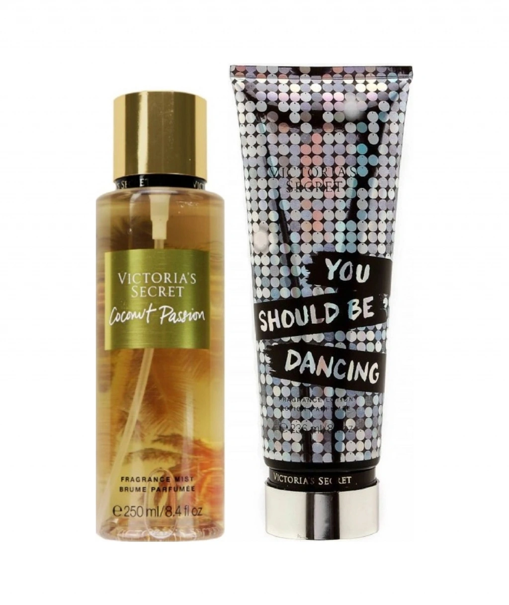 Victoria's Secret MIX&MATCH :Coconut Passion Vücut Spreyi VE You Should Be Dancing Vücut Losyonu 2'li Set ; Kalıcı koku için duş sonrası losyonu sürerek cildinizi yumuşatın ve sprey ile son dokunuşu yapın ; Coconut Passion : Koku tipi : Sıcak , Koku notaları: Vanilya, Hindistan Cevizi, Papatya, Vadi Zambağı ve Aloe veranın koku notalarını içerir. ; You Should Be Dancing : Koku tipi : Sıcak ; Koku notaları: Yumuşak ve ballı çiçek notaları ve hindistan cevizinin lüks kremsi ve tereyağlı tonlarıyla zenginleştirilmiştir