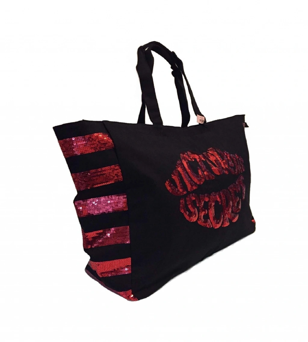 Victoria's Secret Pullu Payet Işlemeli Kadın Plaj Çantası Siyah - Kırmızı