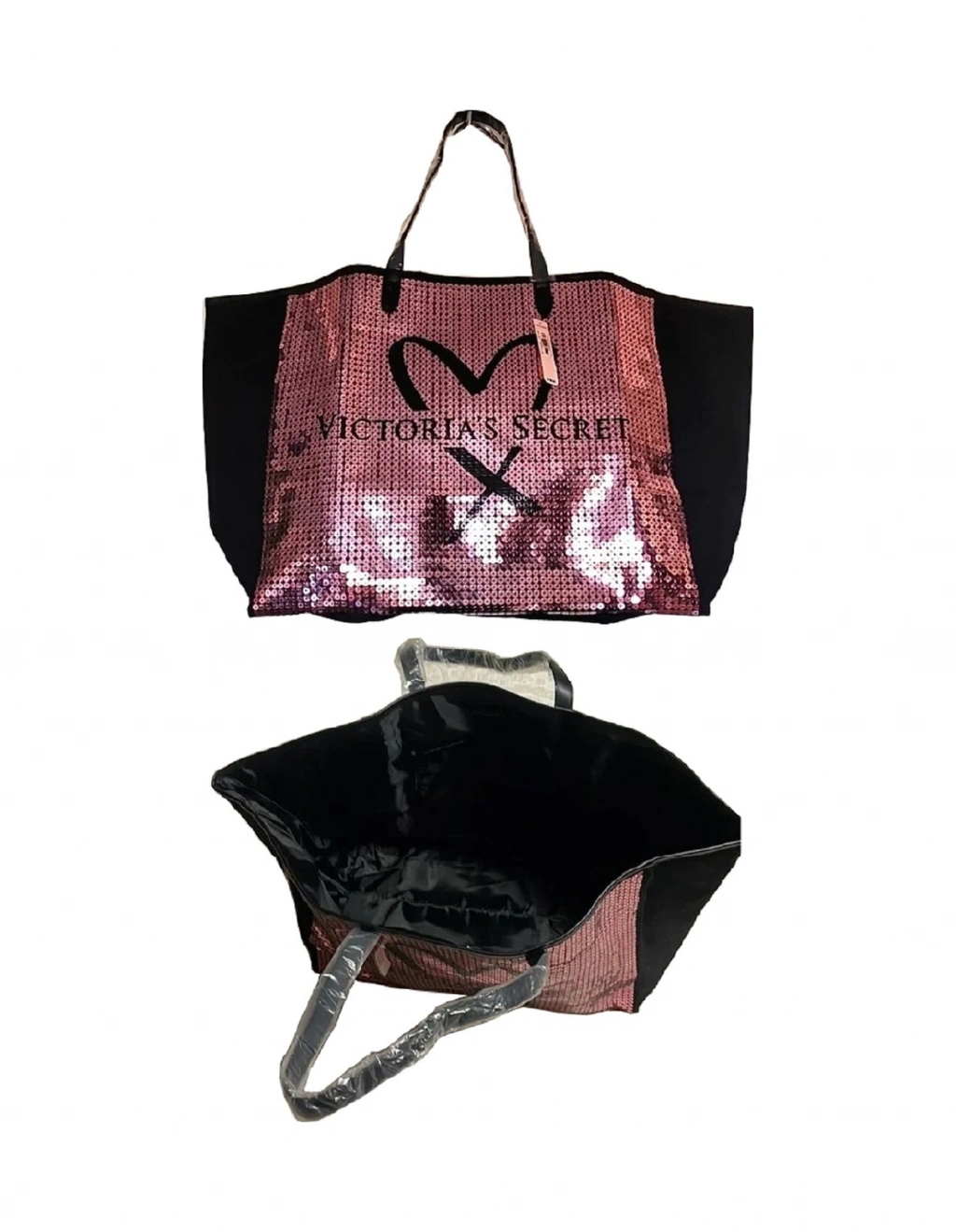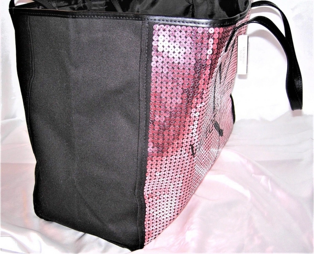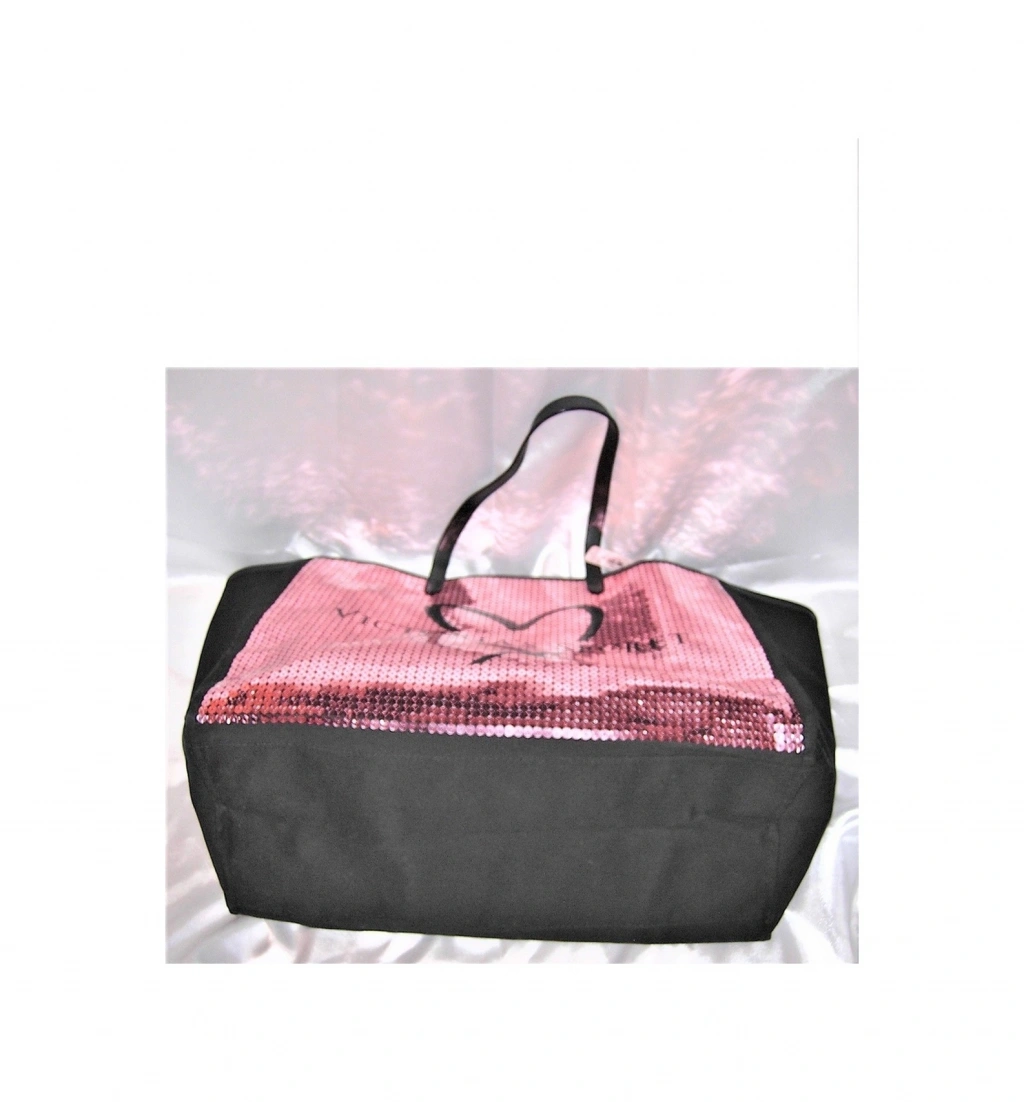 VS Pembe Pullu Payet İşlemeli Kalp Logolu Büyük Boy Kanvas Çanta ; Hem hafta sonu seyahatlerinizde kurtarıcınız olacak hem de plajlarda tüm ihtiyaçlarınızı taşıyacak boyutta tasarlanmıştır , üstelik çok şık Siyah kanvas kumaş üzerine pembe payetlerle Kalp logo detaylı ; Tarzı : Seyahat / Plaj /Otantik ; Dış Materyal : %100 Kalın Kanvas kumaş ; Desen : Payet işlemeli / yazı logolu ; Kapama Özelliği : Fermuarsızdır ; İç cep: 1adet küçük iç cep mevcuttur ; Genişlik: 42cm - Yükseklik: 33cm - Derinlik: 22cm ; Ürün %100 orijinaldir ; İade ve değişim için ürün orjinallik etiketinin kopartılmamasına dikkat ediniz