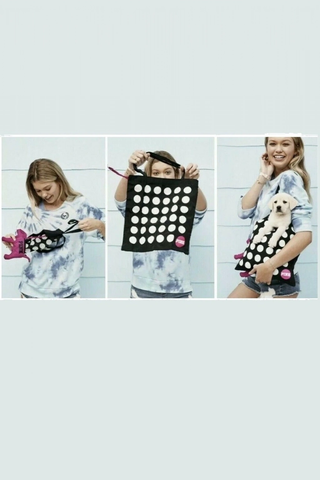 Victoria's Secret Vs Pink Katlanabilir Puantiyeli Pupy Temalı Mini Çanta Siyah